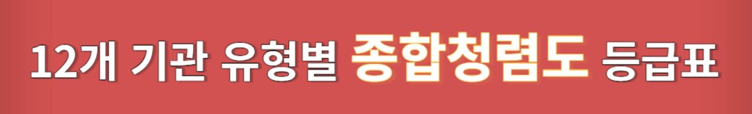 청렴도 평가는 공공기관의 부패 방지를 목적으로 매년 실시하고 있으며, '23년도 12개 기관 유형별 종합청렴도 등급표는 아래와 같습니다.