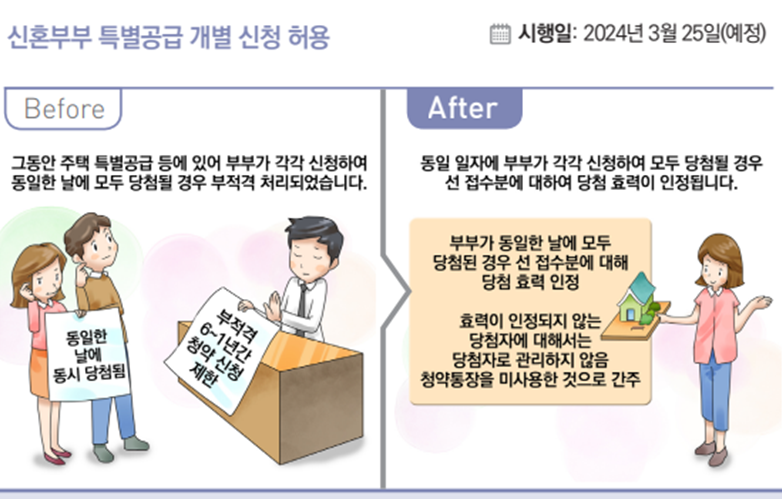 2. 신혼부부 특별공급시 부부 개별 신청이 허용됩니다.